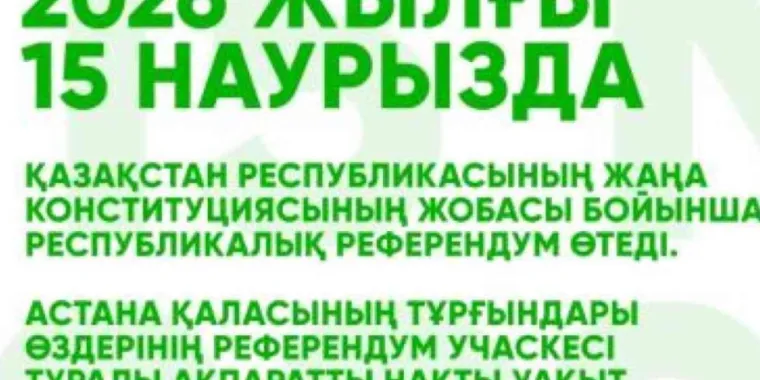 2026 жылғы 15 наурызда Қазақстан Республикасының Жаңа Конституциясының жобасы бойынша республикалық референдум өтеді. Астана тұрғындары сайлау учаскелері туралы ақпаратты бірнеше жолмен біле алады, деп хабарлайды елорда әкімдігінің ресми сайты.